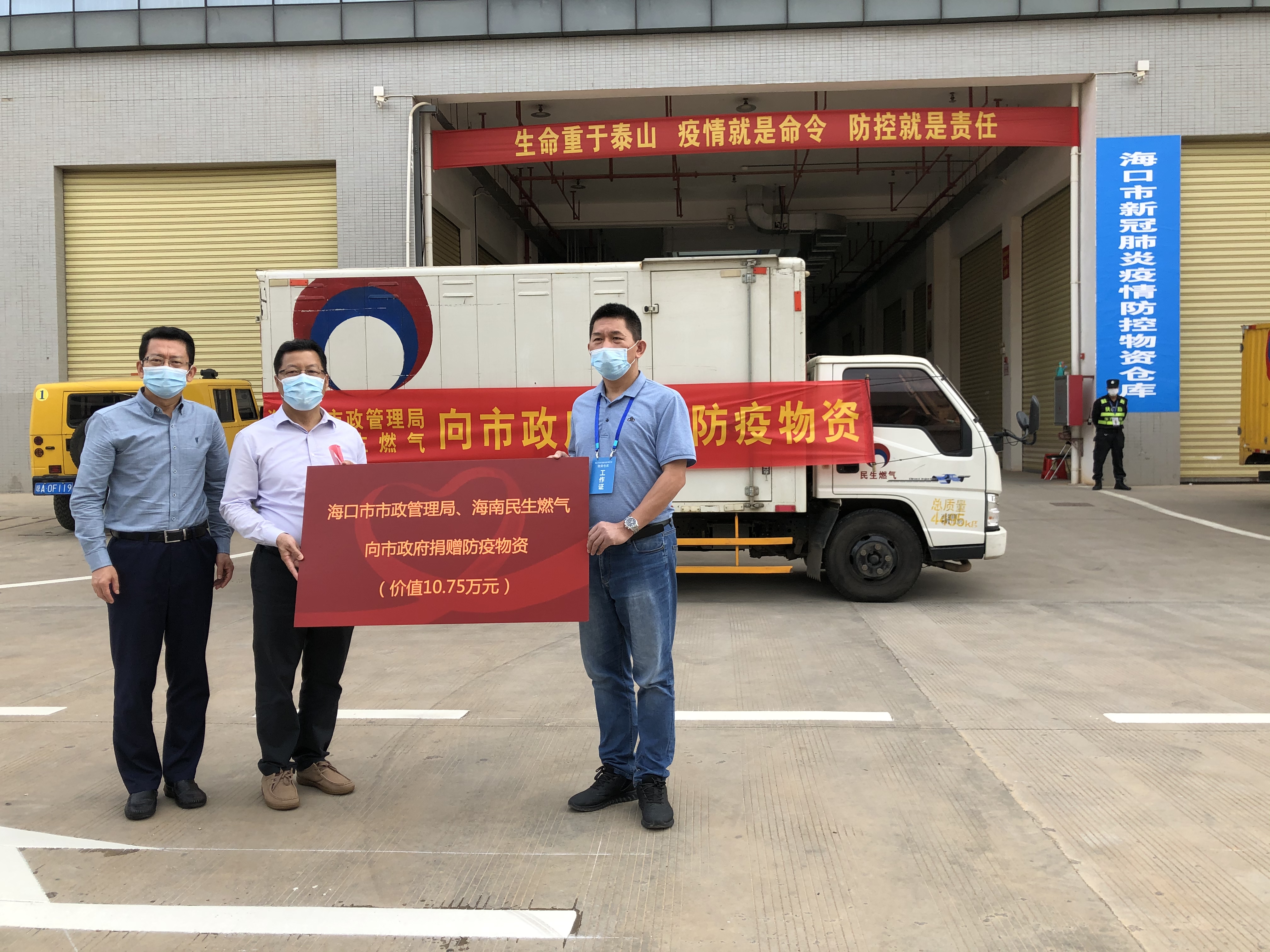 3月4日上午,海口市市政管理局、海南民生燃氣向海口市防疫指揮部捐贈防疫物資活動在秀英區防疫指揮部倉庫舉行。海口市市政管理局副局長鐘鉅、海口市商務局副調研員羅寅誕、海南民生燃氣總裁李曉峰等相關領導出席此次捐贈活動。在抗疫特殊時期,海南民生燃氣工會向公司全員發起募捐活動,得到大家的積極響應,總計籌集善款10.75萬元,購置酒精、消毒液等防疫物資,捐贈給海口市防疫指揮部用于疫情防控工作,踐行企業社會責任。